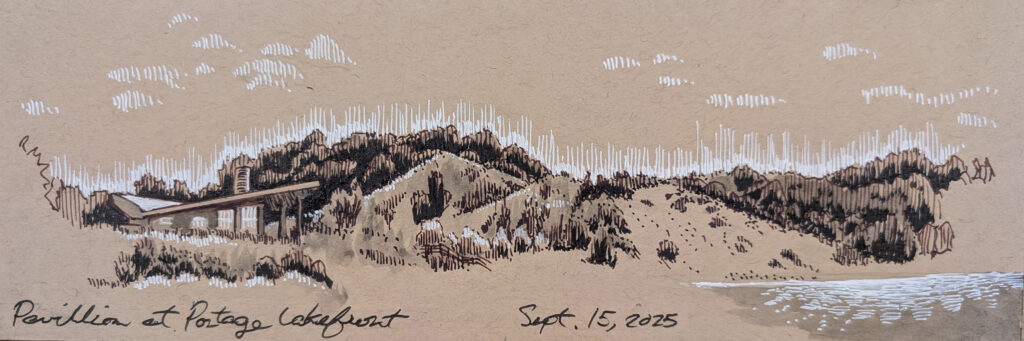 Indiana outtake sketch #1: Indiana Dunes NP hosted me in an airy 3 bedroom mid-century house, clad in local limestone. My base of operations hugged an edge of the park, 4 minutes from the Visitors Center. It provided the perfect base of operations. I am very grateful for the hospitality, kindness, and respect for my endeavors, shown by the park staff.